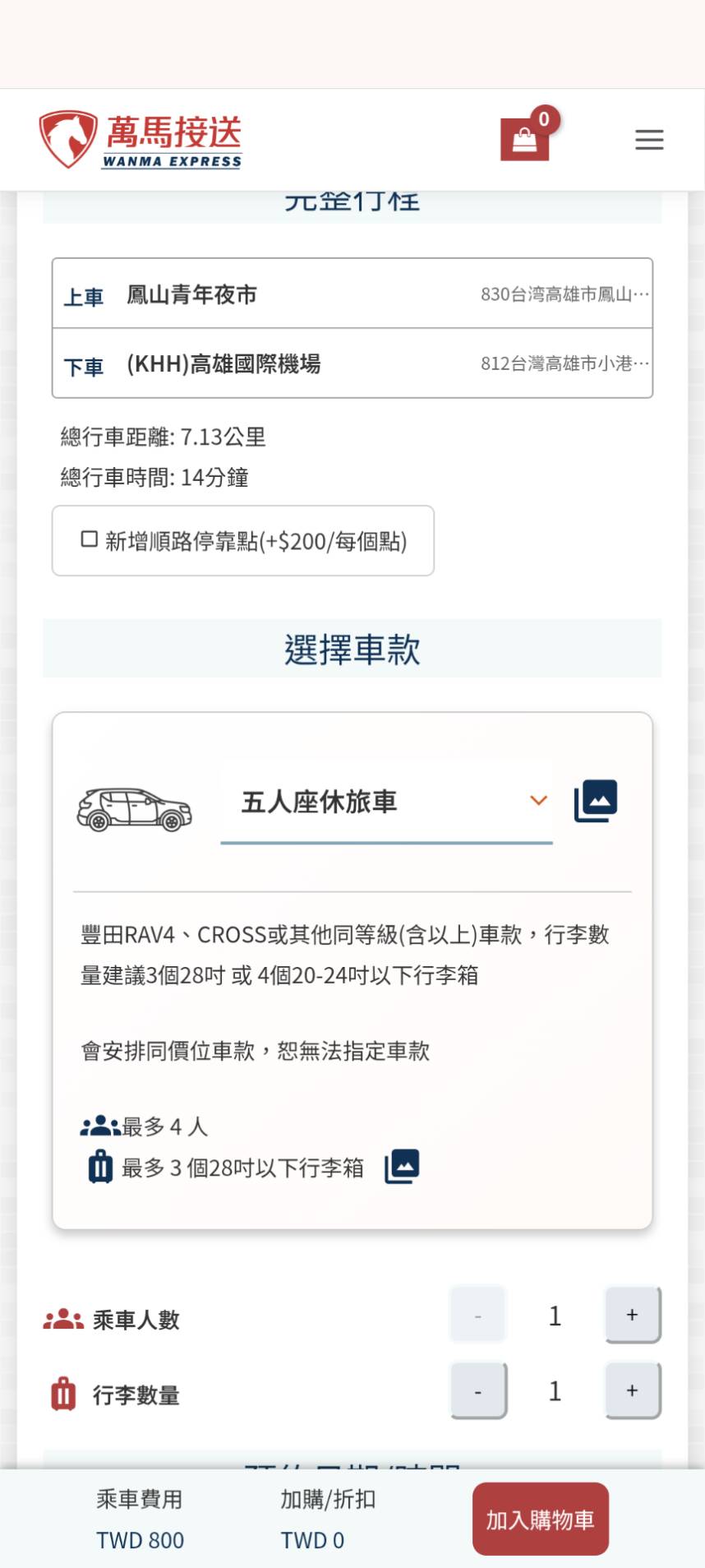 (有這四種車型可選,但無法指定特定車款)